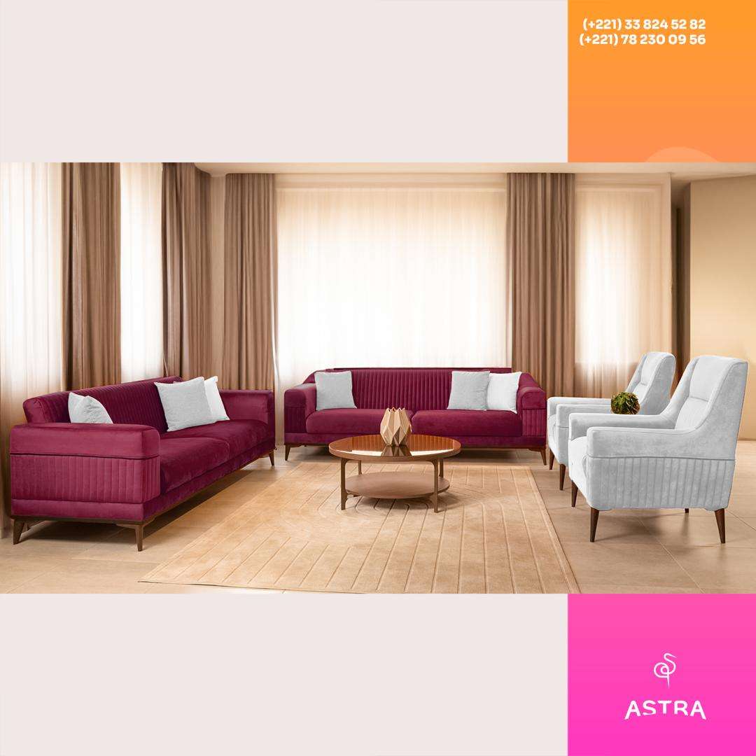 ➡️ Canapés 3 places (x2) – Couleur Bordeaux